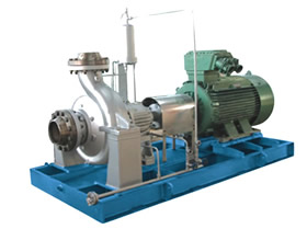 泵蓋通過(guò)止口固定在中間支架上,然后通過(guò)泵體與中間支架的止口連接,把泵蓋夾緊在中間。泵體是軸向吸入、徑向排出、底腳支承式,可直接固定在底座上。懸架部件通過(guò)止口固定在中間支架上,并用懸架支架支撐在底座上。檢修時(shí)可以不拆卸進(jìn)出口聯(lián)接管路、泵體和電機(jī),只需拆下加長(zhǎng)聯(lián)軸器的中間聯(lián)接件,即可退出轉(zhuǎn)子部件進(jìn)行檢修。